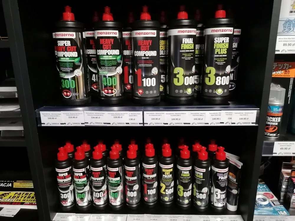 Pasty polerskie i woski: Aby przywrócić lakierowi samochodu blask i głębię koloru, oferujemy szeroki wybór past polerskich i wosków, które usuwają drobne rysy, plamy oraz oksydację, nadając lakierowi niepowtarzalny połysk i trwałą ochronę.